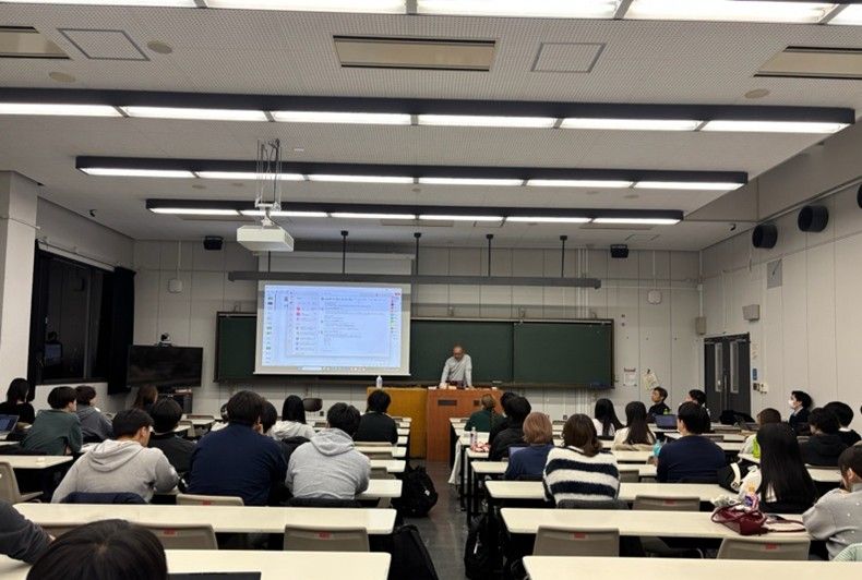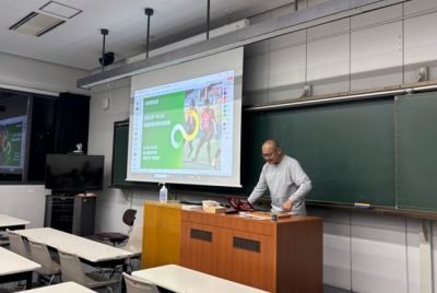 プログラム科目「スポーツ・ビジネス・チャレンジ演習(明治安田寄付講座)[担当教員:関根 正敏 准教授]」が主催となり、2025年12月19日、「企業スポーツによる社会貢献活動の最前線―日本郵政×富士通が描く企業スポーツのビジョンとはー」という講演会を実施しました。