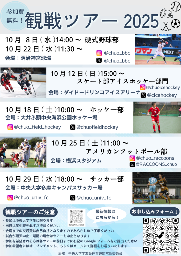 【学部生向け】体育連盟部会の観戦ツアー 参加者募集中(2025年度)