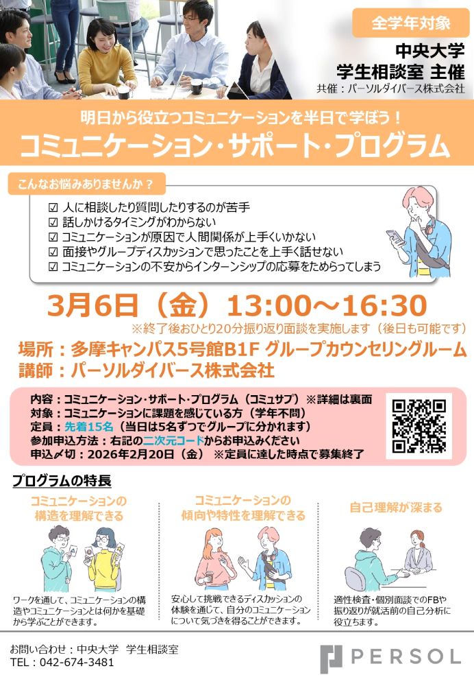 2026年がスタートして早3週間が経ちました。本年最初の学生相談室のイベントをパーソルダイバース共催で開催いたします。