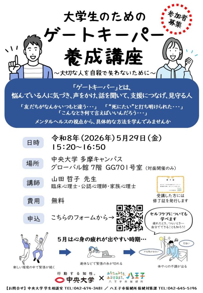 学生相談室(多摩キャンパス):042-674-3481八王子市保健所 保健対策課:042-645-5196