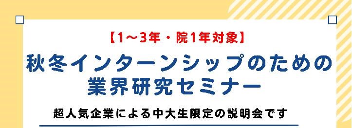 (1~3年・院1年対象)「秋冬インターンシップのための業界研究セミナー」対面開催のお知らせ
