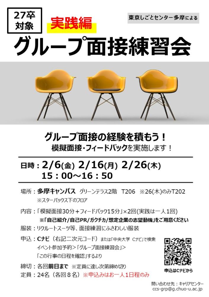 【27卒対象】「グループ面接練習会<実践編>」開催のお知らせ