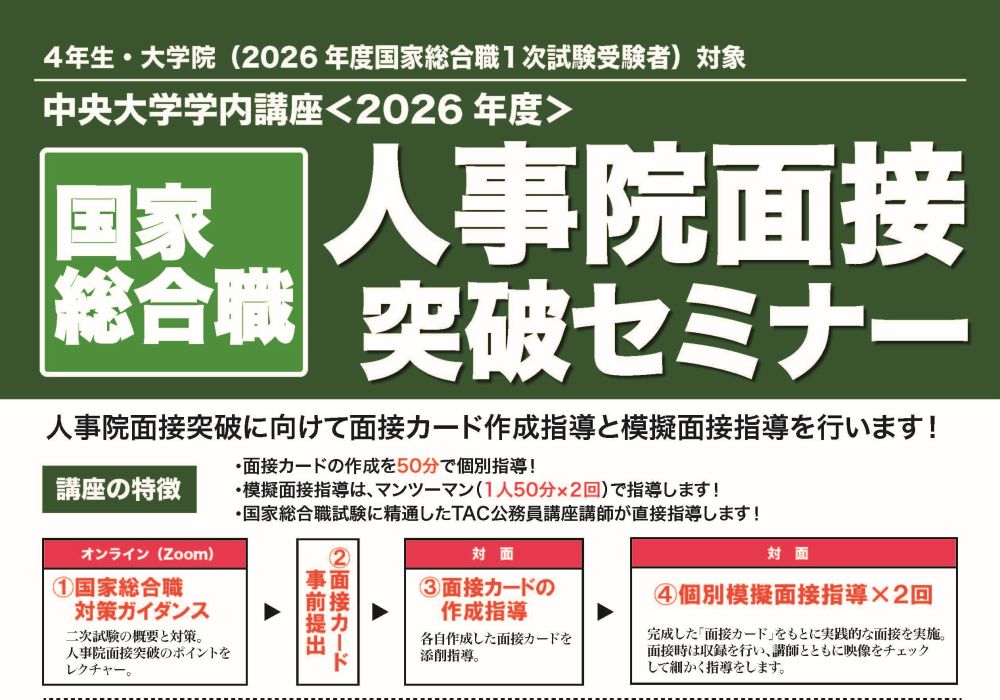 【公務員・4年生&大学院生 国家総合職1次試験受験者対象】人事院面接突破セミナー