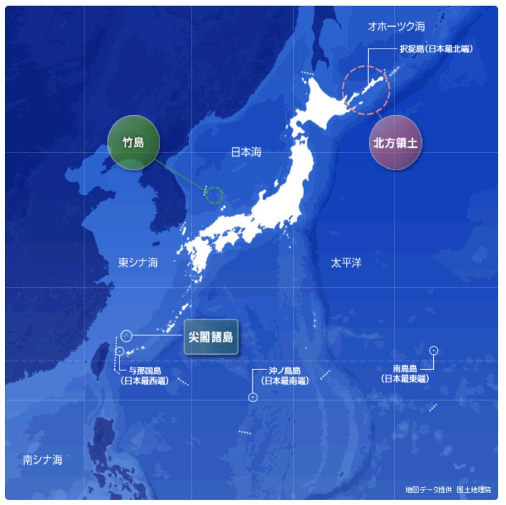 A notable feature of the territorial and border issues facing Japan is that invisible borders are drawn at sea. Compared to land borders, the invisibility of maritime borders poses factors that make it difficult to resolve maritime disputes.[9] First, although there are now many scenes in which issues arising at maritime borders are shown in the media, these tend to be viewed as disputes that take place far from the eyes of the general public, except for residents and fishermen in borderlands. Secondly, because resources are spread widely beneath the seafloor, many countries become involved in disputes and the situation becomes even more complicated. Hence, the existence of invisible maritime borders transforms visible islands such as Takeshima and the Senkaku Islands into symbols of nationalism on maps.