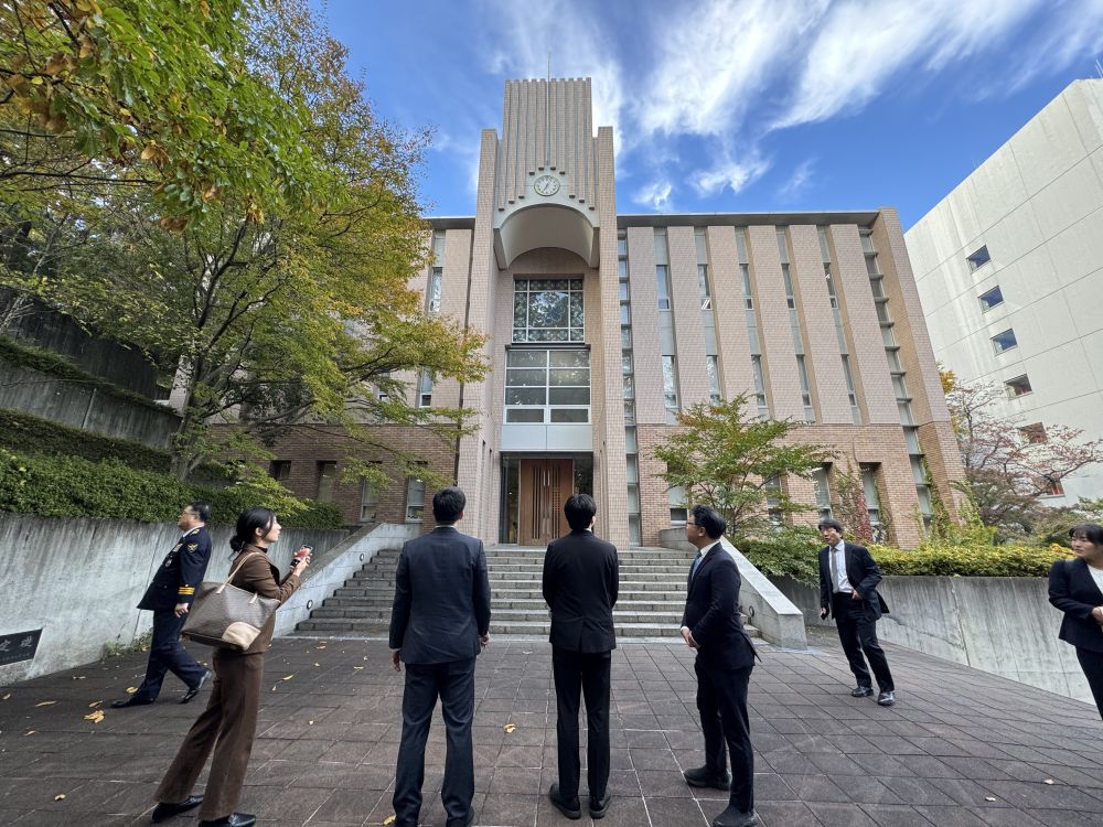 炎の棟(大学史資料館・法と正義の博物館)の前にて