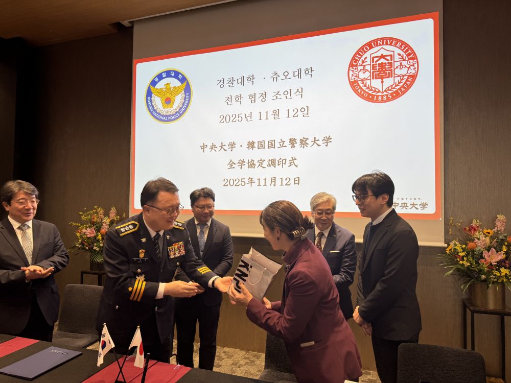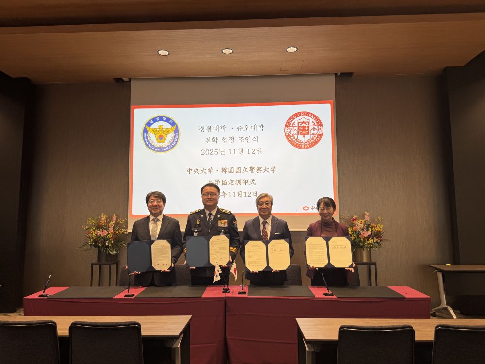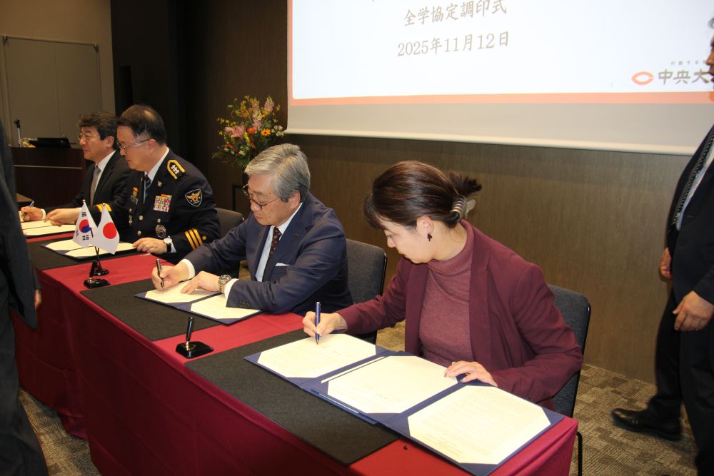 2025年11月12日(水)、多摩キャンパス Global Gateway Chuo ホールにおいて、韓国国立警察大学との全学協定調印式を実施しました。