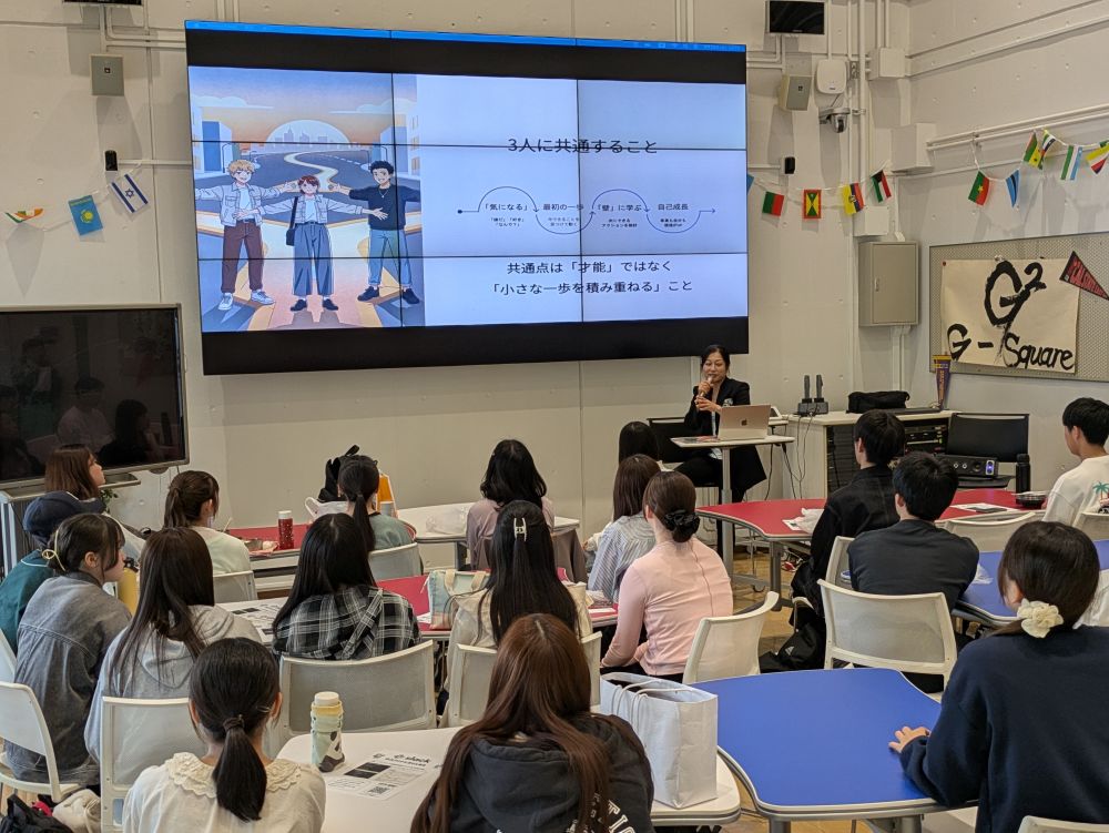 本イベントでは、本学の国際センター学生支援コーディネーター瀬戸氏が、AI時代に求められる人材像や、社会で活躍する人たちのキャリアの秘訣、そして、大学時代の今だからこそできることについて語りました。参加した学生一人ひとりが、今日からの挑戦に踏み出すきっかけを得る内容でした。