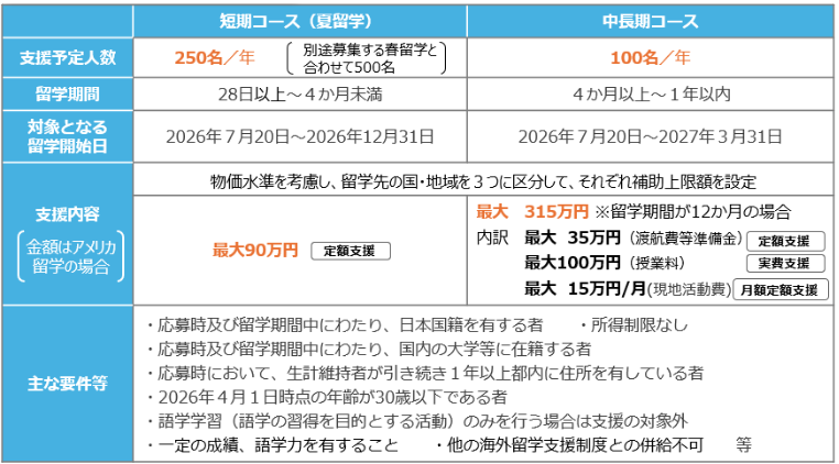 ・留学先国・地域における留学開始日が 2026年7月20日(月・祝)から2026年12月31日(木)までの間である計画