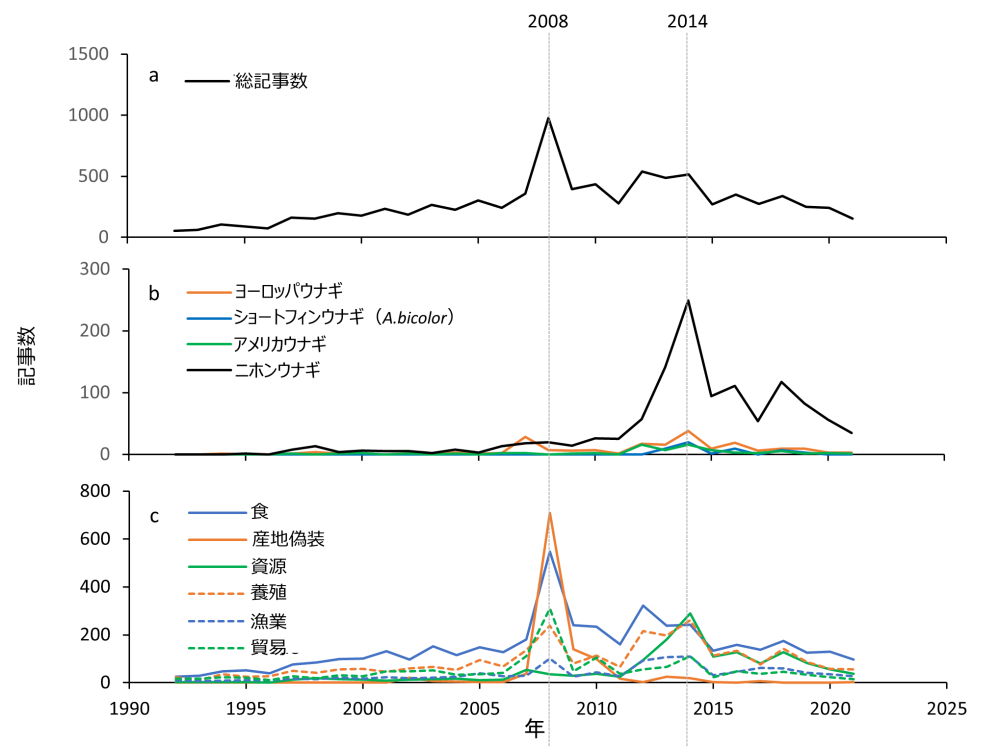 日本の新聞はウナギをどのように報道してきたか 過去30年間にわたるウナギに関する新聞記事を分析しIUCNレッドリストやワシントン条約が日本の報道に与えた影響を明らかに