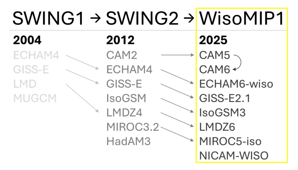 図2:水同位体気候モデル相互比較研究枠組みの変遷。