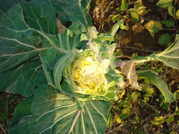図1 ニホンジカの食害を受けたキャベツ(提供:長野県)