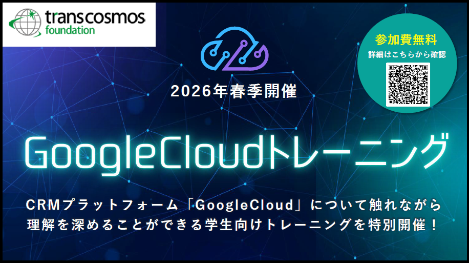 【春季プログラム募集開始】 Google Cloudトレーニング(トランスコスモス財団助成 DX人材育成プログラム)