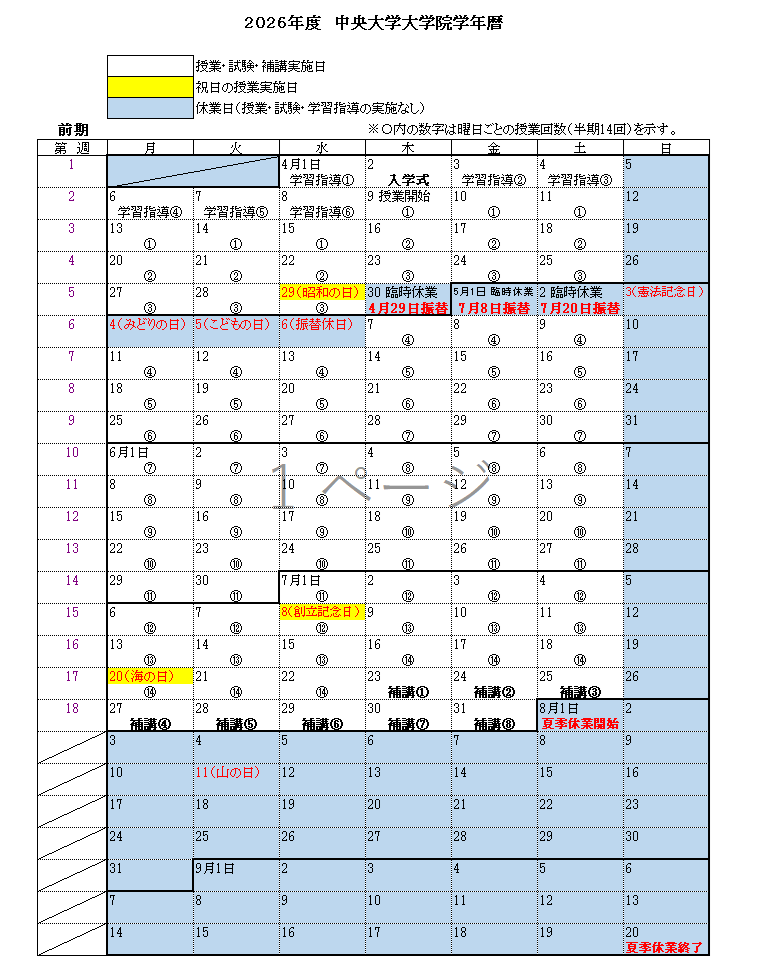 2026年度 大学院学年暦(4月入学)