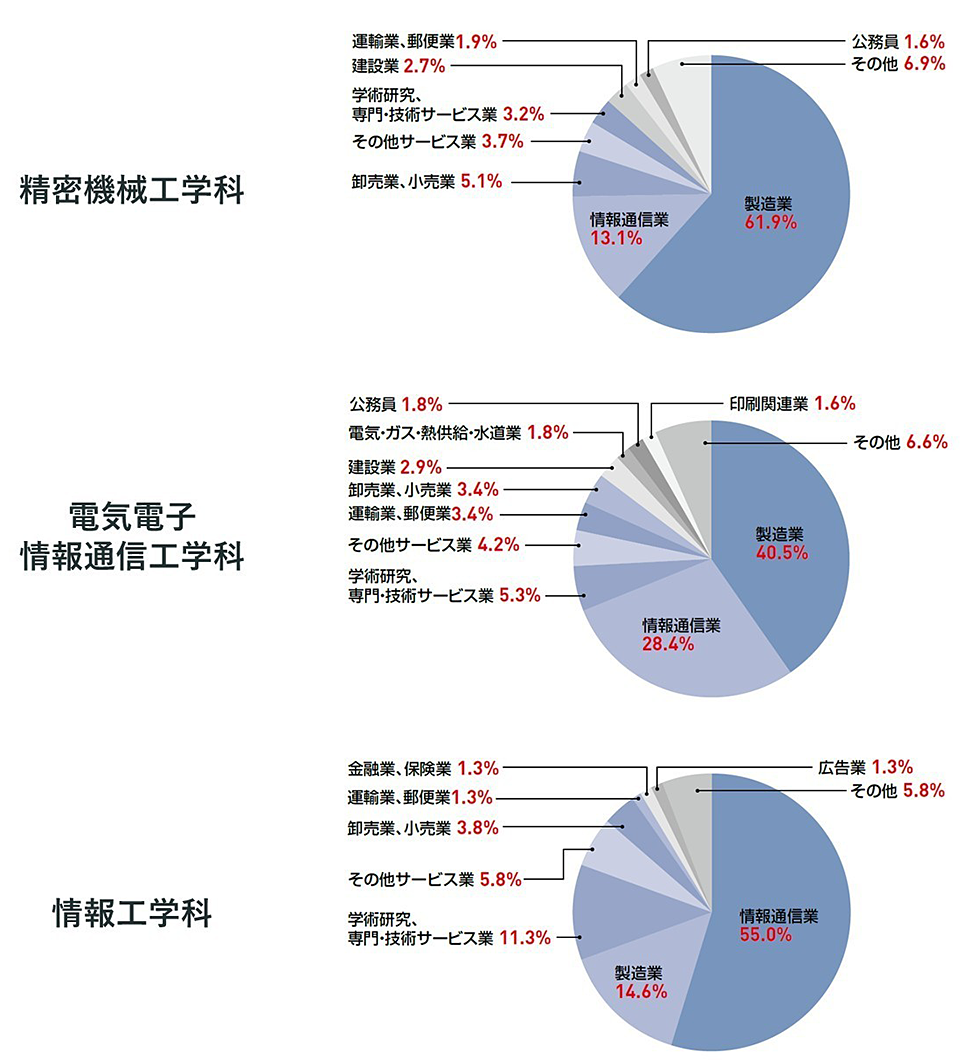 先進理工学部、および理工学研究科(精密工学専攻・電気電子情報通信工学専攻・情報工学専攻)の進路・就職状況、サポート体制をご紹介します。