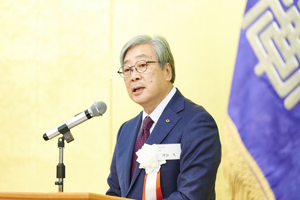祝賀会は、河合 久 学長が挨拶に立ち、日本公認会計士協会東京会 会長の髙橋 克典様を始めとする会計士界の来賓の皆さまからご祝辞を頂戴し、和やかな雰囲気の中、多くの合格者、ご来賓の方々にご出席いただきました。