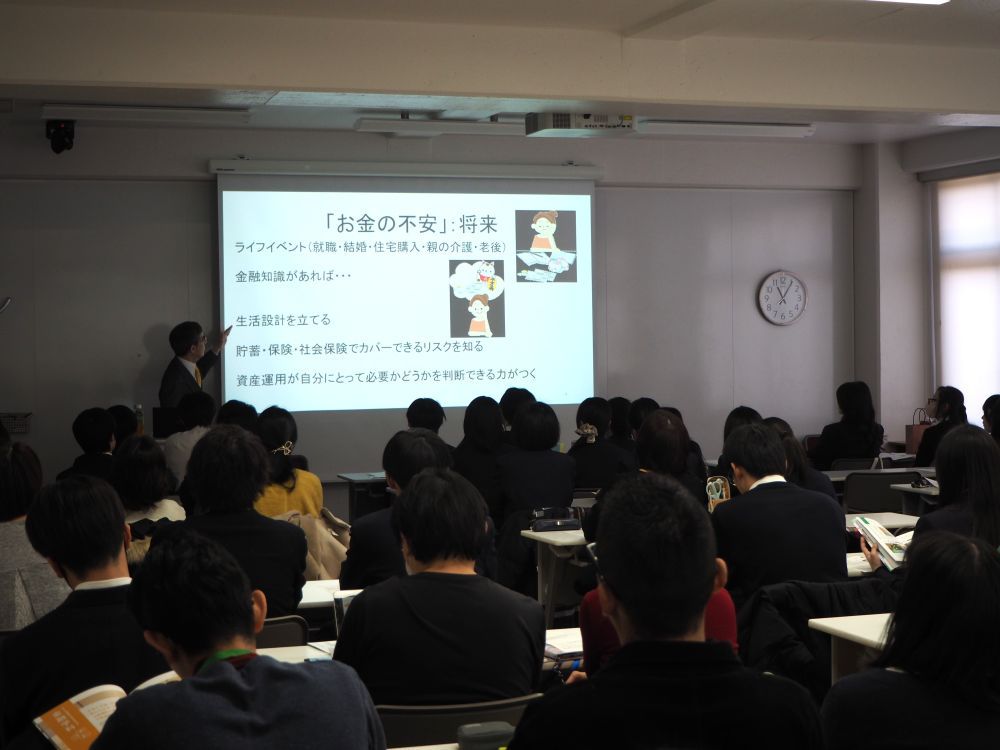 高校学習指導要領改訂で金融経済教育の内容が拡充されたことをうけ、「なぜ高校生から金融教育が必要なのか」というテーマのもとに、高校生たちの豊かな将来の生活の一助となる金融知識を早くから深めるメリットについて説明しました。