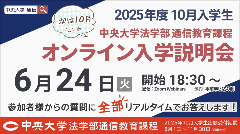通信教育課程では、2025年10月入学向けのオンライン入学説明会を開催いたします。パソコンやスマートフォンを使用して、全国どこからでも参加ができます。
