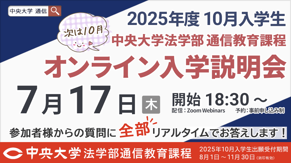 通信教育課程では、2025年10月入学向けのオンライン入学説明会を開催いたします。パソコンやスマートフォンを使用して、全国どこからでも参加ができます。