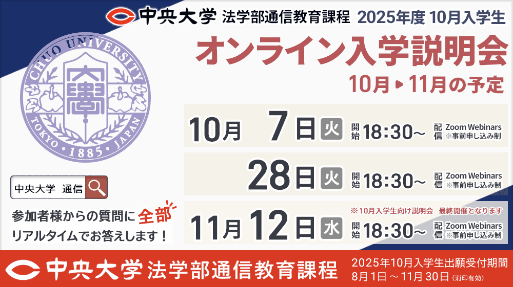 法学部通信教育課程 10月12月のオンライン入学説明会開催予定