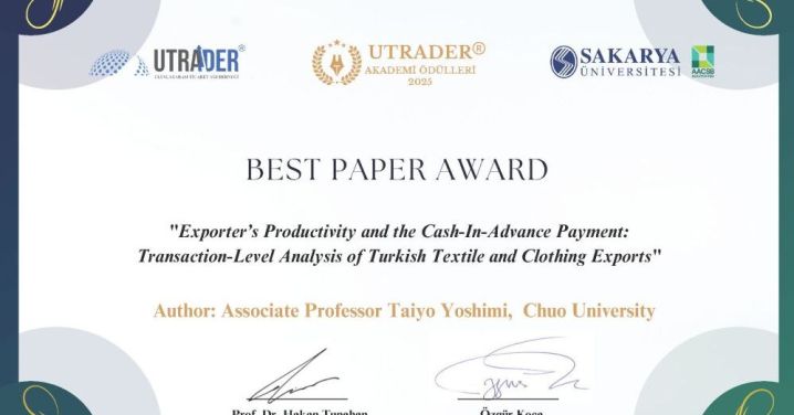 経済学部准教授 吉見太洋の共同研究論文がトルコにて最優秀論文賞を受賞しました