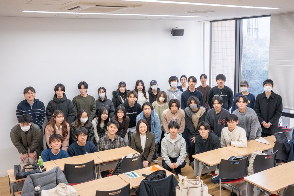 経済学部の「キャリアデザイン(エアラインビジネス)」(担当教員:後藤孝夫)は日本航空(JAL)から講師をお招きし、業界のリアルな状況を学生にご教示いただく人気科目です。2026年1月22日に後期の最後の授業がありました。
