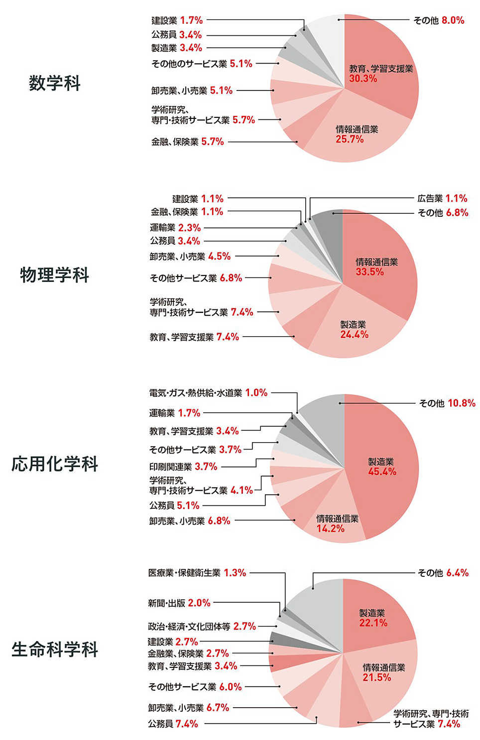 基幹理工学部、および理工学研究科(数学専攻・物理学専攻・応用化学専攻・生命科学専攻)の進路・就職状況、サポート体制をご紹介します。