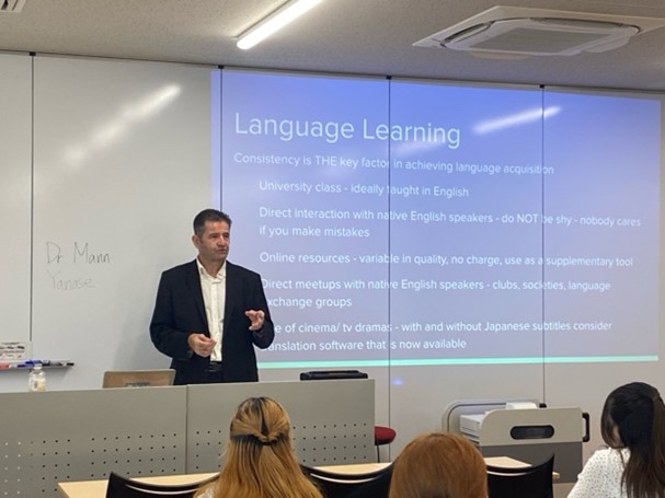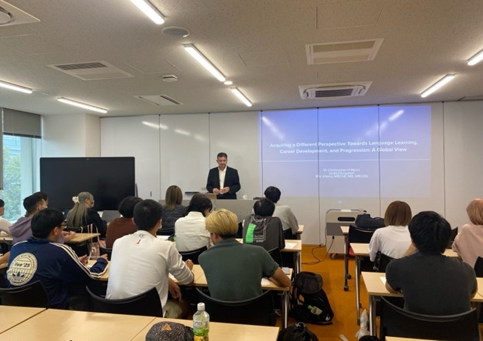 On October 1, we had the privilege of welcoming a former professor from the University of Birmingham’s Medical School, who delivered a lecture on future careers and decision-making from a global perspective. The session proved highly meaningful, offering valuable insights for students as they consider their future paths in the context of Japan’s rapidly progressing demographic changes and globalization.