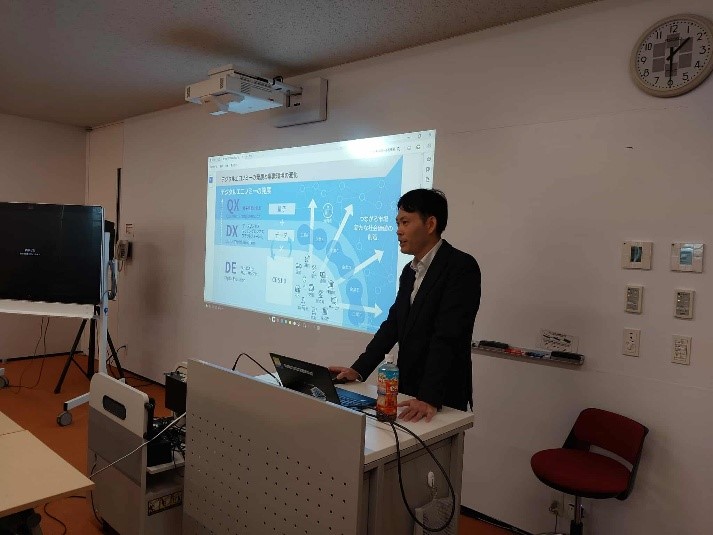 10月28日に専門演習Ⅰ(担当教員:内平直志)において、株式会社東芝 技術企画部の黄日華 氏に「東芝グループのデジタルトランスフォーメーション」についてご講演いただきました。