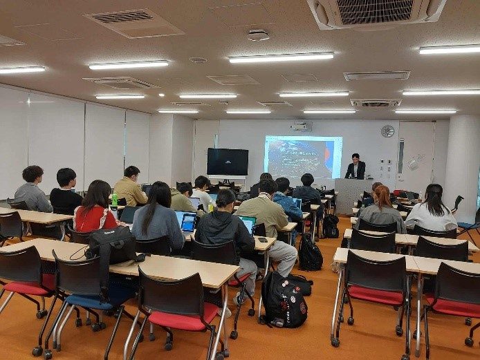 黄日華 氏は全社の技術企画部門での経験をもとに、東芝におけるデジタルトランスフォーメーションの考え方や具体的な事例について学生に説明してくださり、学生達からは非常に多くの関心・質問が寄せられ、活発な意見交換ができ、日本の製造業におけるデジタルトランスフォーメーションの取り組みについて理解を深める機会となりました。