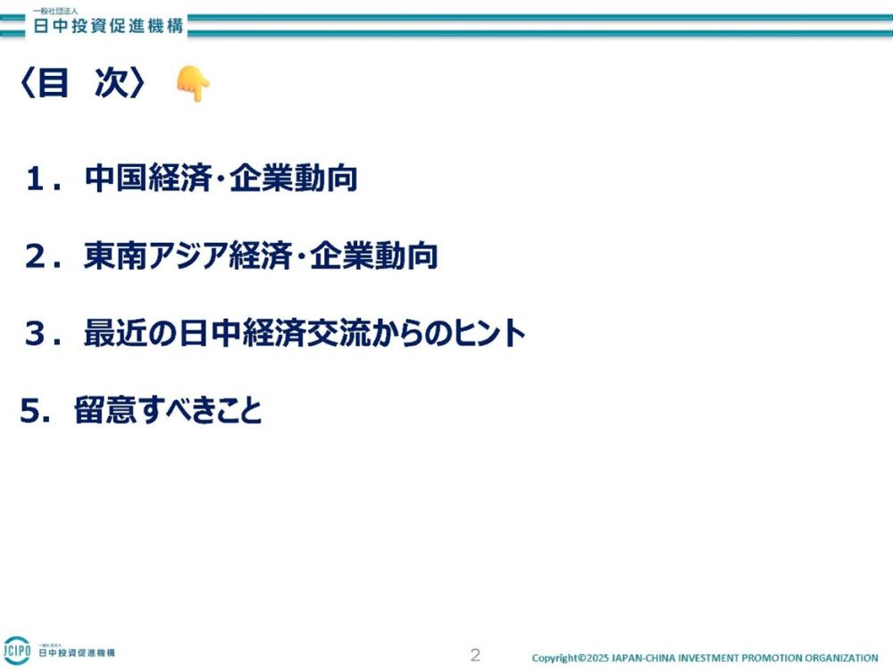 岡事務局長は、①中国経済・企業動向、②東南アジア経済・企業、③最近の日中経済交流からのヒント、④留意すべきことなどを中心に講義されました。