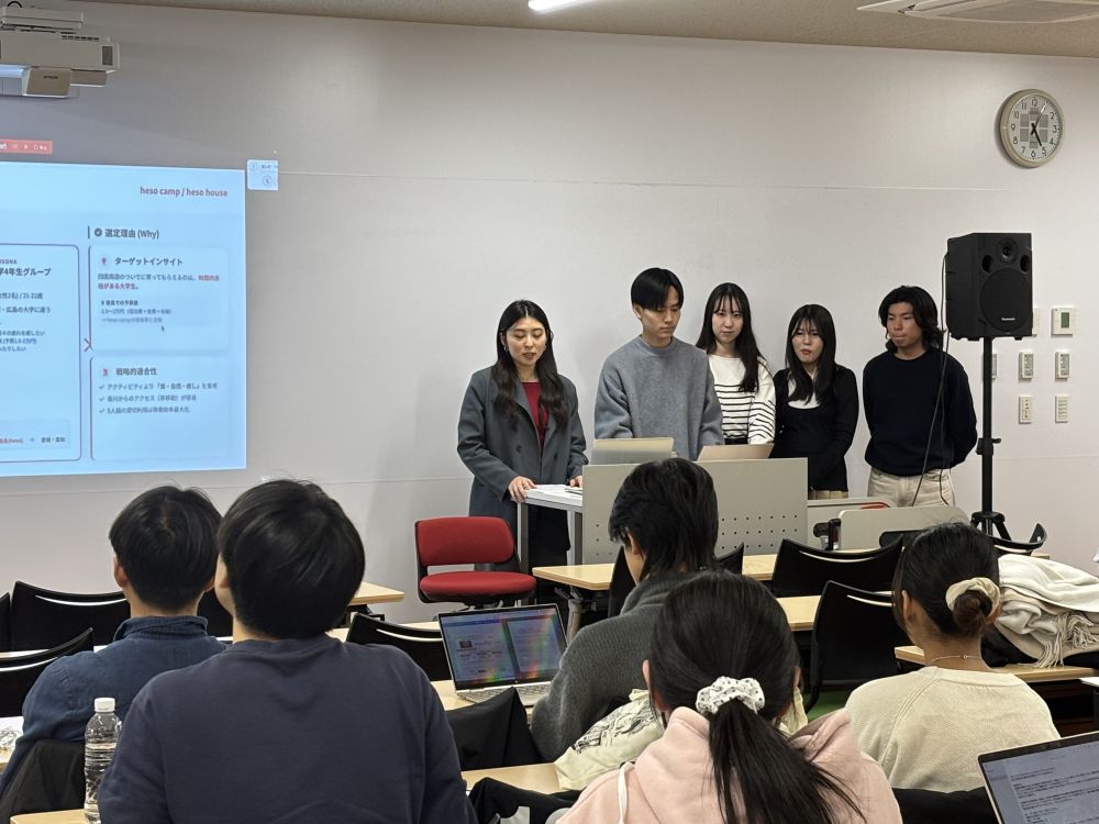 授業後、学生からは「仮説を立てては検証し、講評をもとに改善を重ねることで、ただ思いついたアイデアではなく、筋の通った提案にできたと感じた」「人生で初めてのコンサルティング経験を通して、仮説の考え方やクライアントが本当に求めていることを先回りして考える難しさと面白さを実感した」「データや戦略だけを見ていると見落としてしまう、現地の空気感や暮らしに寄り添う視点の大切さに気づいた」「AIを使うことで短時間でクオリティの高い資料を作れた一方で、どこからを自分たちが考えるべきなのか迷う場面も多かった」「他の班の発表を聞いて、自分たちの提案がまだ抽象的で、もっと具体化できたはずだと気づいた」「本気で取り組んだからこそ、もっと良くできたのではという悔しさが残り、このプロジェクトに本当の意味で向き合えていたと感じた」といった感想が聞かれました。