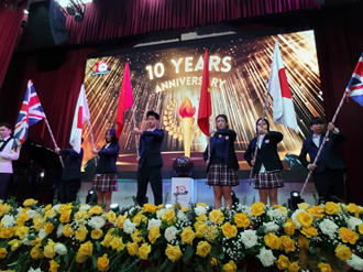 【国際経営学部】3年のホアン・ミン・トゥアンさんとレ・ファム・トゥイ・リーさんがベトナム日本国際学校の10周年記念式典で祝辞を述べました