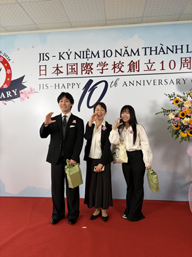 2026年3月7日、JISの設立10周年式典が開催され、本学からは大村雅彦理事長、河合久学長らが参列しました。この式典において、JISの卒業生であり、本学国際経営学部3年生のホアン・ミン・トゥアンさんとレ・ファム・トゥイ・リーさんが、同学部教授の国松麻季(副学長・国際センター所長)とともに記念講演者として登壇し、10周年記念の祝辞とともに、中央大学での学生生活を紹介し、後輩たちにメッセージを伝えました。