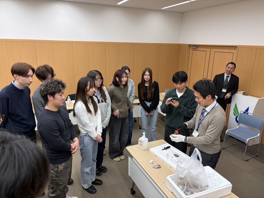 その後、学生たちは数か月にわたり、ターゲット市場の選定に加え、輸出先国における水産物の衛生・検疫規制、通関制度、関税・非関税障壁といった制度面の分析を行いました。さらに、生鮮品である牡蠣の特性を踏まえ、コールドチェーンの確保や輸送コスト、リードタイム管理といった物流上の課題に加え、為替動向や国際情勢といった地政学的リスクについても検討しました。これらの分析と並行して、各ステークホルダーへの具体的なヒアリングを重ねることで、実現可能性の高い輸出戦略の構築に取り組みました。