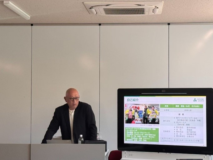 なお、講演の補佐として、日本航空株式会社(JAL)の関係者およびスプリング・ジャパン株式会社セールス・マーケティング部の徐智瀚部長、劉旭超氏にもご同行いただきました。本講義はゼミの研究プロジェクトの一環として実施されたものであり、学生が企業の概要やプロジェクトの背景を把握するための出発点として位置づけられています。