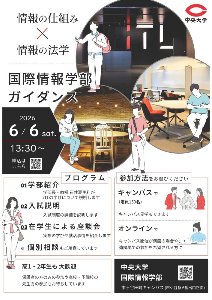 このたび、iTLの学びの魅力を皆様にお伝えするべく、国際情報学部ガイダンスを実施いたします。