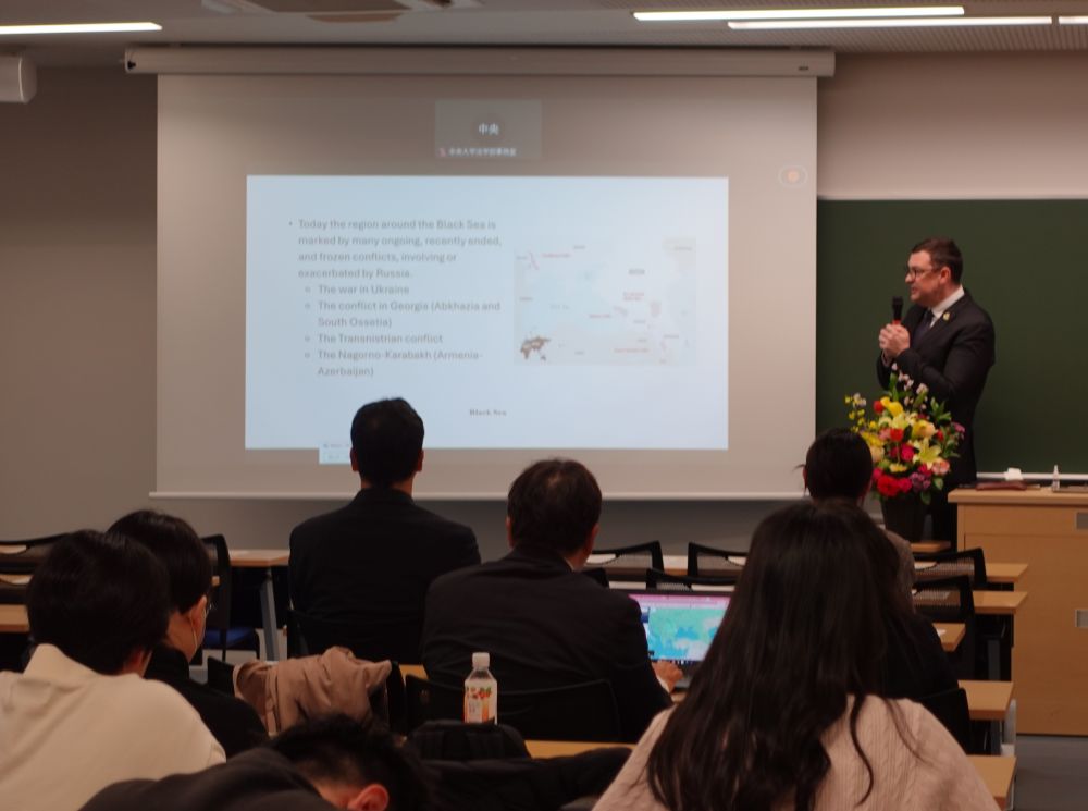 2026年3月30日(月)、駐日ルーマニア特命全権大使のオヴィディウ アレクサンドゥル ラエツキ閣下を講師に迎え、法学部講演会「黒海地域におけるルーマニアの欧州大西洋的価値」を開催しました。