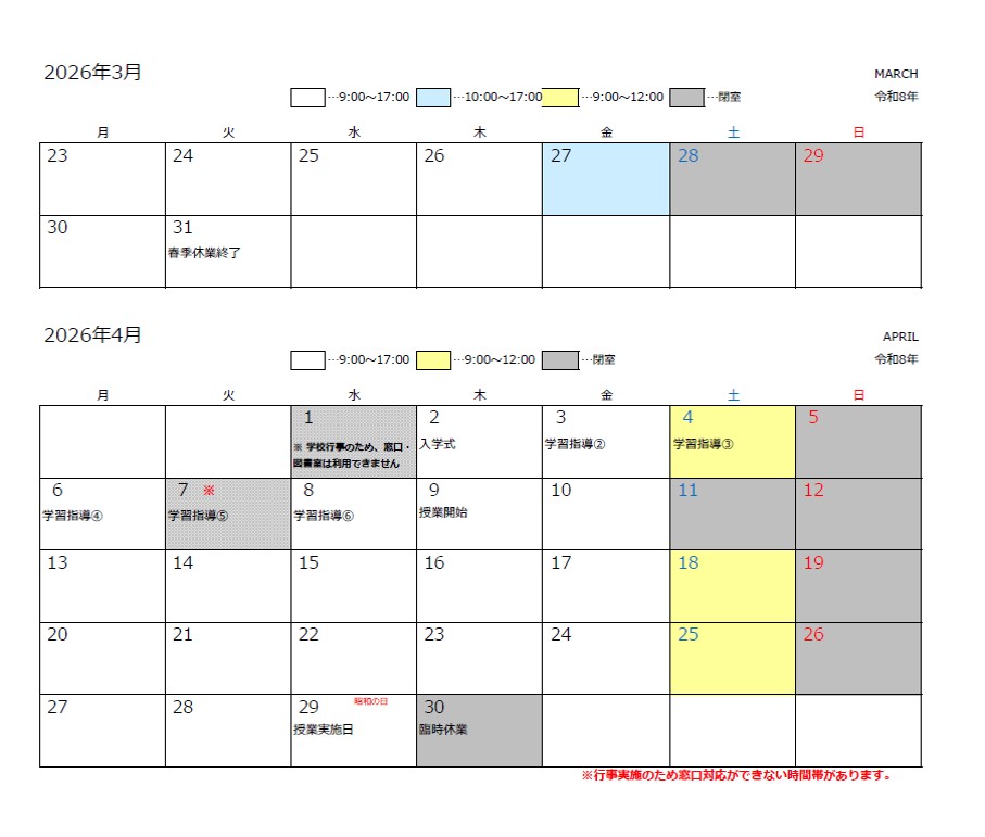 【重要】英文研究室 開室スケジュール(2026年3月下旬~4月30日まで)