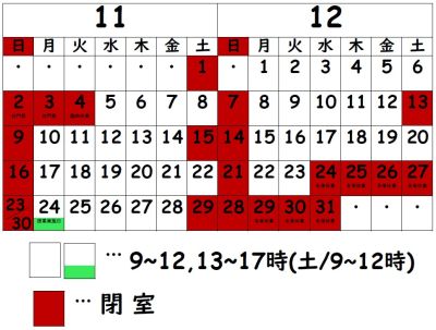 ※土曜や祝日授業日、大学休業日の開閉室はカレンダーの通りです。