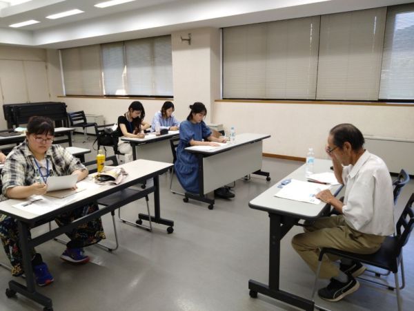2日目は、長年にわたり世界遺産富士山の現地解説を行っている新津健先生を講師としてお招きし、御自身の経験を通した富士山におけるインバウンドの現況について説明いただいた後、展示室に移動し、新津先生の指導のもと、学生が英語により展示を解説する体験をしました。