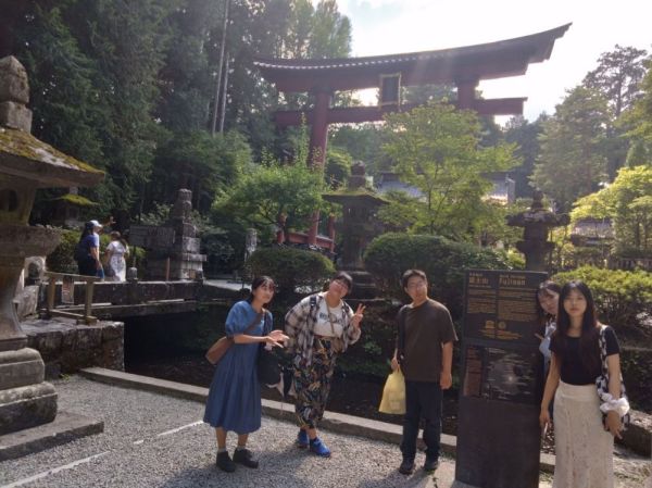 また、世界遺産富士山の構成要素である北口本宮冨士浅間神社を訪れ、世界遺産記念銘などを見学し、現地における情報発信について学びました。