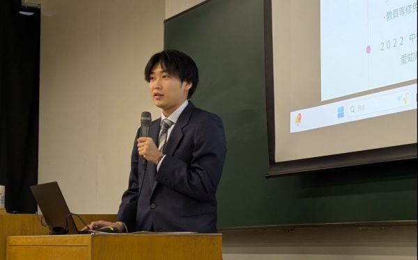 今年度は、ともに本学大学院文学研究科日本史学専攻博士前期課程を修了された、静岡県立小山高等学校教諭の石塚皓生氏、岡崎市美術博物館学芸員の安本翔音氏をお迎えし、お二方より学生時代の日本史学専攻での学修や活動、あるいは現在のお仕事の内容、また学生へのアドバイスなど、さまざまな観点からお話をいただきました。