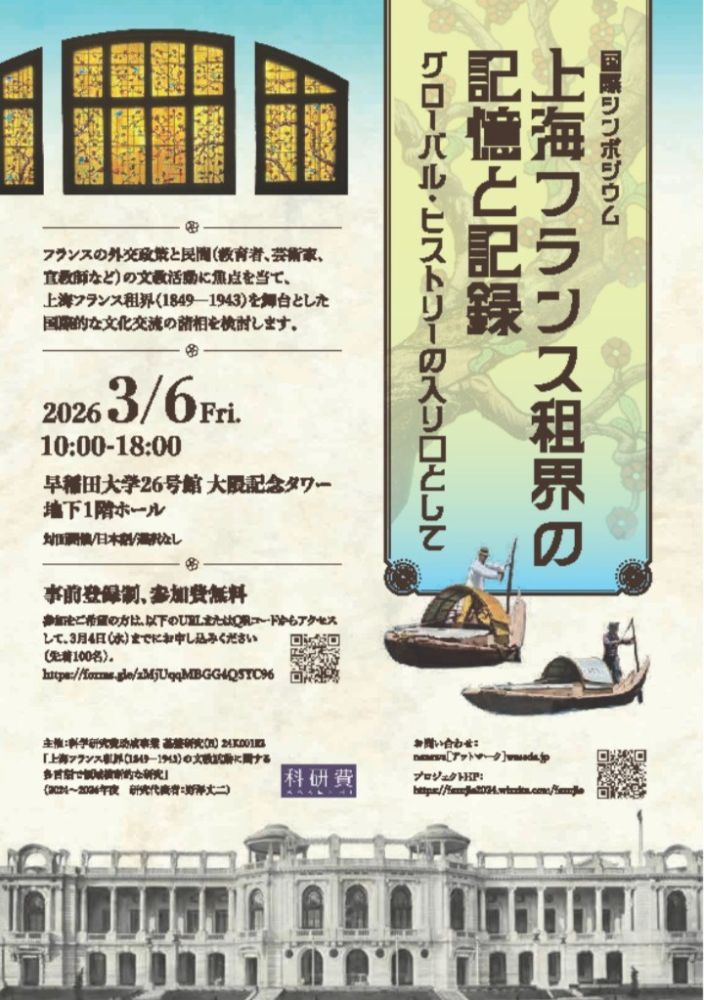 国際シンポジウム「上海フランス租界の記憶と記録」に文学部の専任教員2名が登壇します