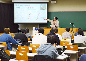 発表者は厳粛な雰囲気のなか、教授陣や学生を前に、緊張しながらも積み上げた研究の成果を出し尽くしました。