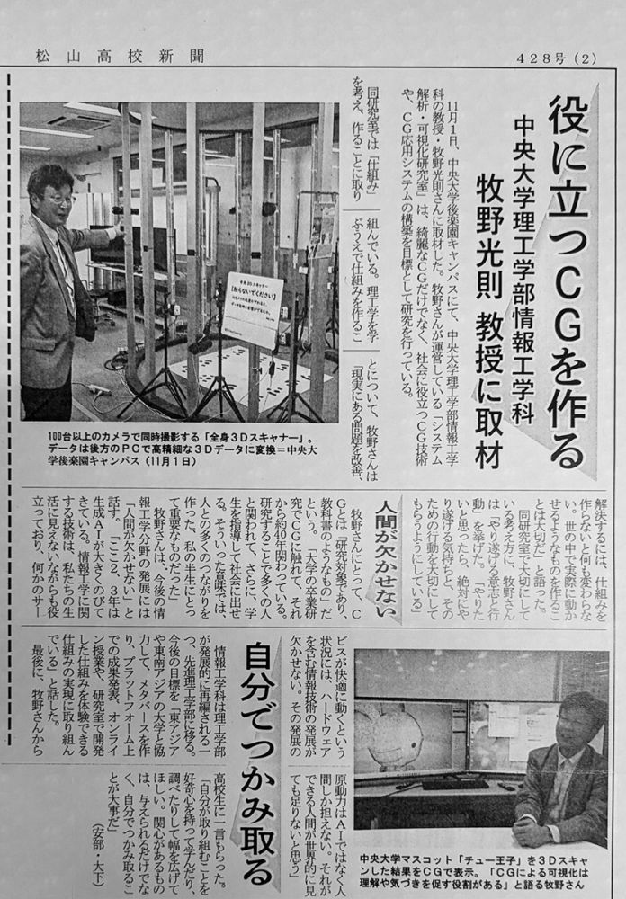 2025年11月に埼玉県立松山高等学校の新聞部の皆さんが来校し、理工学部教授 (情報工学科)牧野光則が、取材に協力しました。