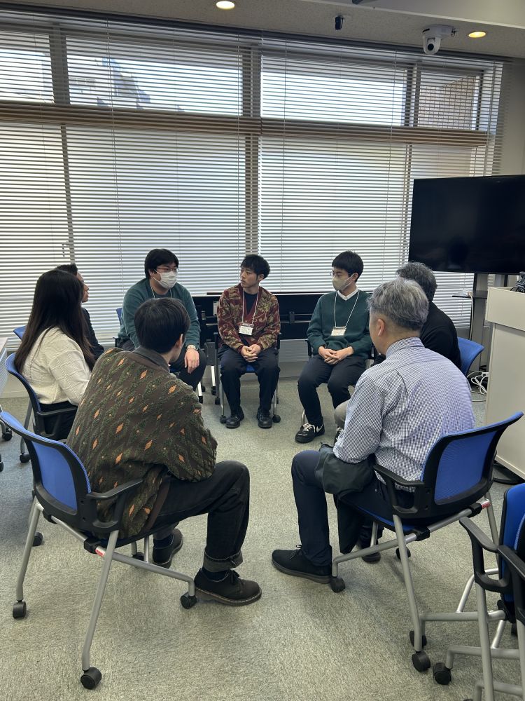 第二部の座談会では、D-CPRAプログラム支援学生が、金子氏と事業統括、事業統括補佐を囲んでのフリートークを行いました。座談会を通して、金子氏や事業統括・事業統括補佐からアドバイスをいただきました。
