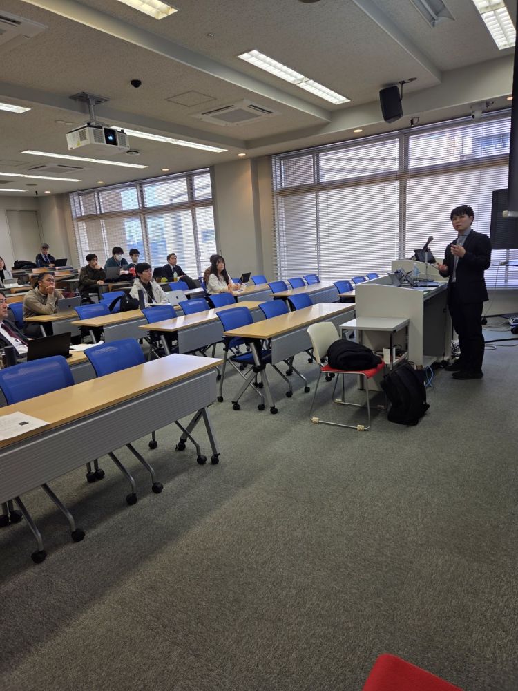 第一部の講演会では、2023年度に本学理工学研究科物理学専攻で博士学位を取得し、現在は株式会社リコー 技術統括部 先端技術研究所 CoE (Center of Excellence) マイクロデバイス領域でエッジデバイスの研究開発を担当している、金子完治氏にご登壇いただきました。