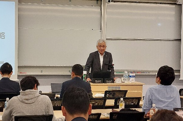 経営戦略論において、株式会社奥村組代表取締役社長 奥村太加典氏による授業内講演を実施