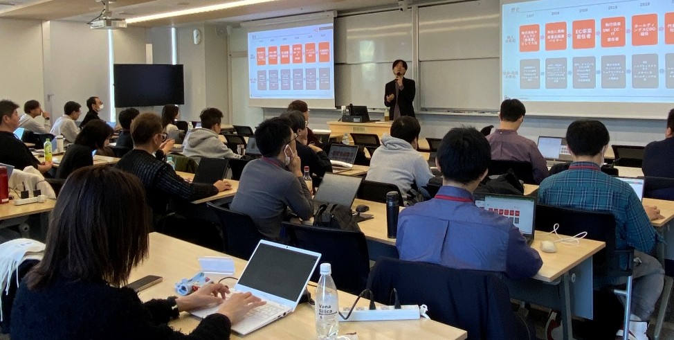 本講義では、株式会社キタムラ代表取締役社長の柳沢啓氏を特別講師としてお招きし、企業におけるDX(デジタルトランスフォーメーション)推進の核心に迫るご講演をいただきました。講義の中では、現代のビジネスにおいて不可欠な「EC」「オムニチャネル」「コールセンター」、そして「AI活用」の4つの領域を主軸に展開されました。特に、単なるシステム導入の成功談にとどまらず、デジタル化の過程で必ず生じる組織内の軋轢や摩擦を、経営トップとしていかに乗り越えてきたかという点は、柳沢氏ならではの実体験に基づいた非常に説得力のある内容でした。変革期における組織運営のあり方について、極めて実践的かつ示唆に富む知見を得ることができ、受講者にとって貴重な学びの機会となりました。
