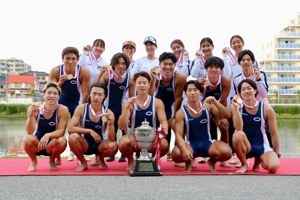 今大会には、斎藤 匠さん(理工学部1年)、豊島 俊介さん(経済学部2年)、西村 南一紀さん(法学部1年)、堀越 春生さん(理工学部2年)、白川 海生さん(青山学院大学2年)、石垣 響さん(法学部2年)、尾崎 元輔(明治大学2年)、村井 航太郎さん(法学部1年)、結城 星羽さん(法学部1年)がエイトに出場し、予選からレースを重ねるごとにしっかりと調子を上げて、決勝では練習の成果を出し切り見事優勝を勝ち取った。
